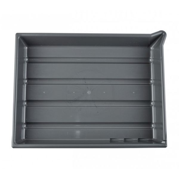 AP Photo darkroom developing tray in Dark Grey which is suitable for paper up to 16x20 inches (40 x 50cm). Manufactured from high grade plastic which is resistant to photographic chemical solutions. Slots on the bottom to facilitate handling and prevent the paper from sticking. Three thermometer holding slots. Features a pouring lip in one corner for emptying the tray without spillage.