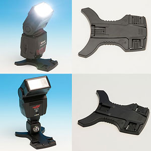 This flashgun stand features 3 hotshoe slots and also a tripod mount socket on the base. Allows you to use a flash off camera without having to lean it against something. Simply slips onto the flashguns hotshoe mount. Standard 1/4 inch tripod screw thread on the base for attaching the stand to a tripod or lighting stand. Weighs just 32 grams.