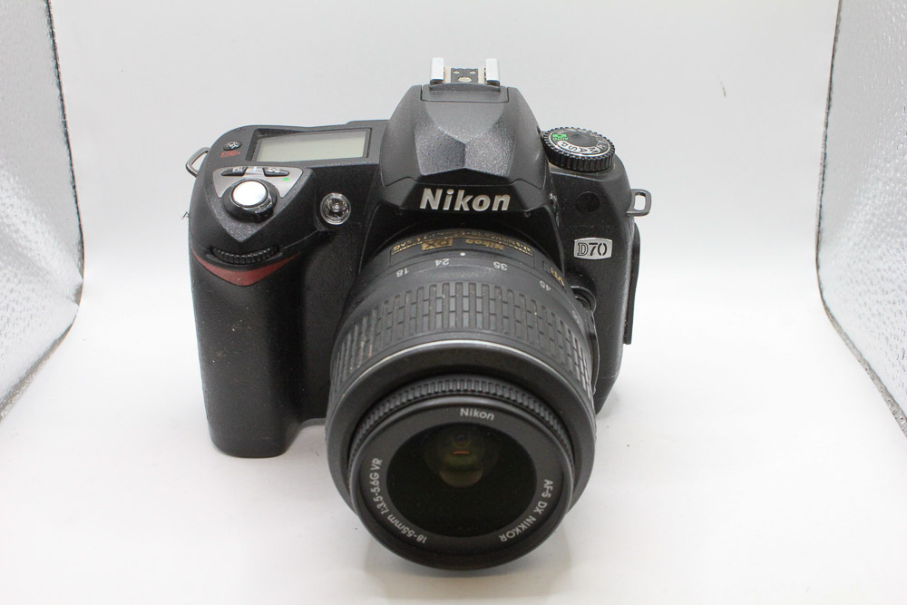 - Used Nikon D70 digital SLR camera with Nikkor 18-55mm f3.5-5.6 AF-S G DX VR zoom lens.