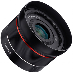 - The Samyang AF 24mm F2.8 FE is a full-frame Sony E Mount lens which is very competitively priced and featured compared to other manufacturers options.